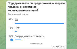 Мы провели опрос среди подписчиков своего телеграм-канала, с целью узнать их мнение насчет продажи энергетических напитков несовершеннолетним.