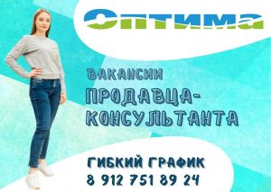 Магазин «Оптима» приглашает на работу ПРОДАВЦОВ-КОНСУЛЬТАНТОВ