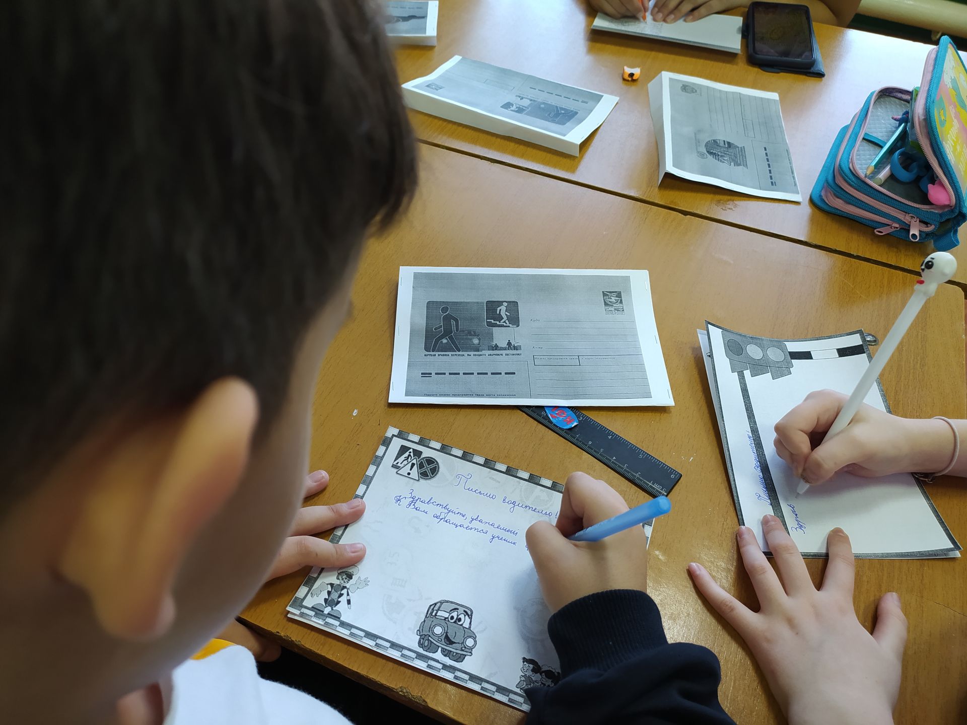 Хатларны урамда йөрүче машина шоферларына, рульдә йөрүче әти-әниләребезгә бирәбез. Юлларда игътибарлы булырга, юл кагыйдәләрен бозмаска өндибез. Алар хатларны алгач ачып укыйлар, үзләренең киңәшләрен әйтәләр. Эшчәнлегебездә уңышлар теләп, юлда йөргәндә җәяүлеләргә кагылышлы кагыйдәләрне истән чыгармаска, аларны үтәргә кирәклеге турында искәртәләр.